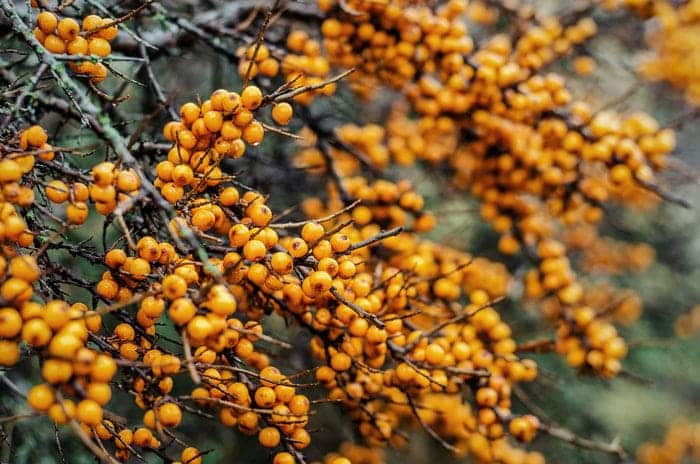 Fructele portocalii ale arbustului de cătină conțin de peste zece ori mai multă vitamina C decât portocala și au o compoziție unică de acizi grași. Mai mult de jumătate este omega-7, o formă rară, precum și alți acizi grași omega care au proprietăți hidratante și emoliente. Fructele de cătină conțin, de asemenea, vitamina E și alți antioxidanți, care protejează pielea.